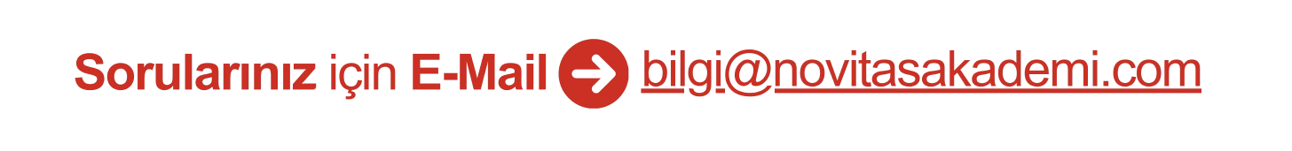 📭 Eğitimle İlgili Sorularınızı bilgi@novitasakademi.comMail Adresimize Gönderebilirsiniz. Geri Dönüşümüz Hızlı Olacaktır, Merak Etmeyiniz.